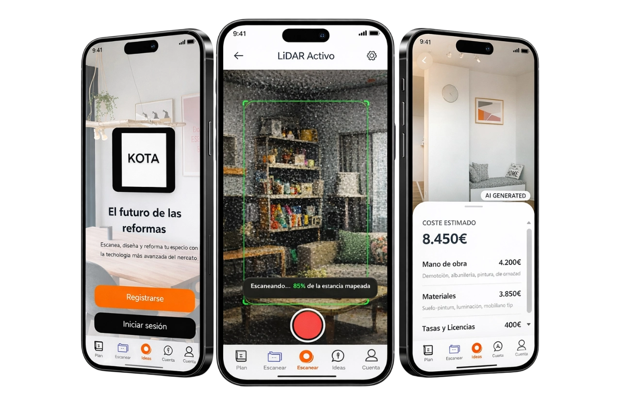 Escanea tu espacio, genera un presupuesto real en segundos y ejecuta tu reforma con profesionales verificados. Todo en una sola plataforma.